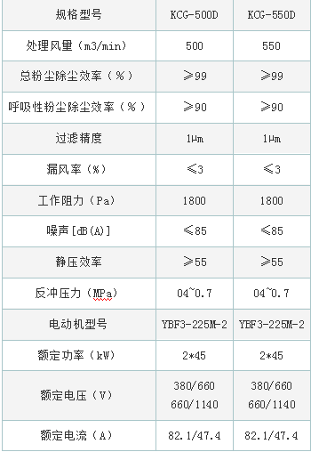 二.礦用干式除塵器的技術參數